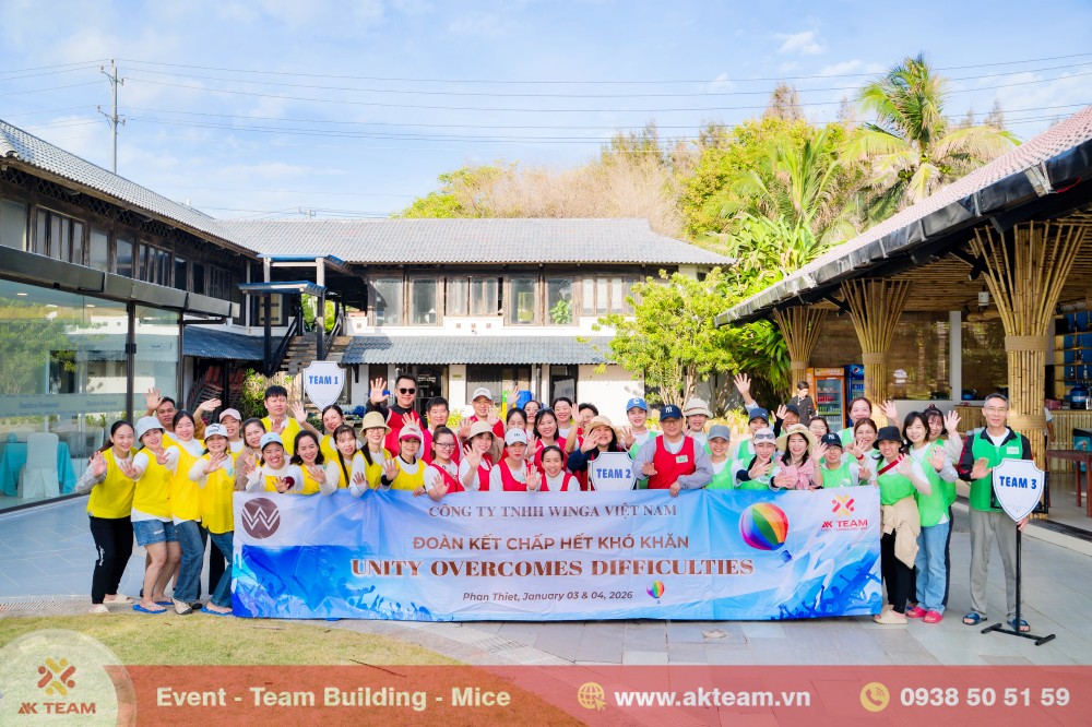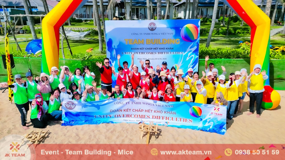 AKTeam đồng hành cùng Winga Việt Nam trong chương trình Team Building ngoài trời với kịch bản thiết kế riêng theo đơn đặt hàng, phù hợp văn hóa doanh nghiệp và mục tiêu gắn kết đội ngũ.